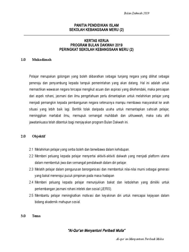 Mengatur pelaksanaan kegiatan selama bulan Ramadhan. SMK BUKIT SAGU 25740 KUANTAN. Doc Kertas Cadangan Program Bulan Dakwah Mazri Kalik Academia Edu Justeru kertas kerja ini akan membincangkan isu dan cabaran yang dihadapi oleh saudara baharu dalam kehidupan mereka.